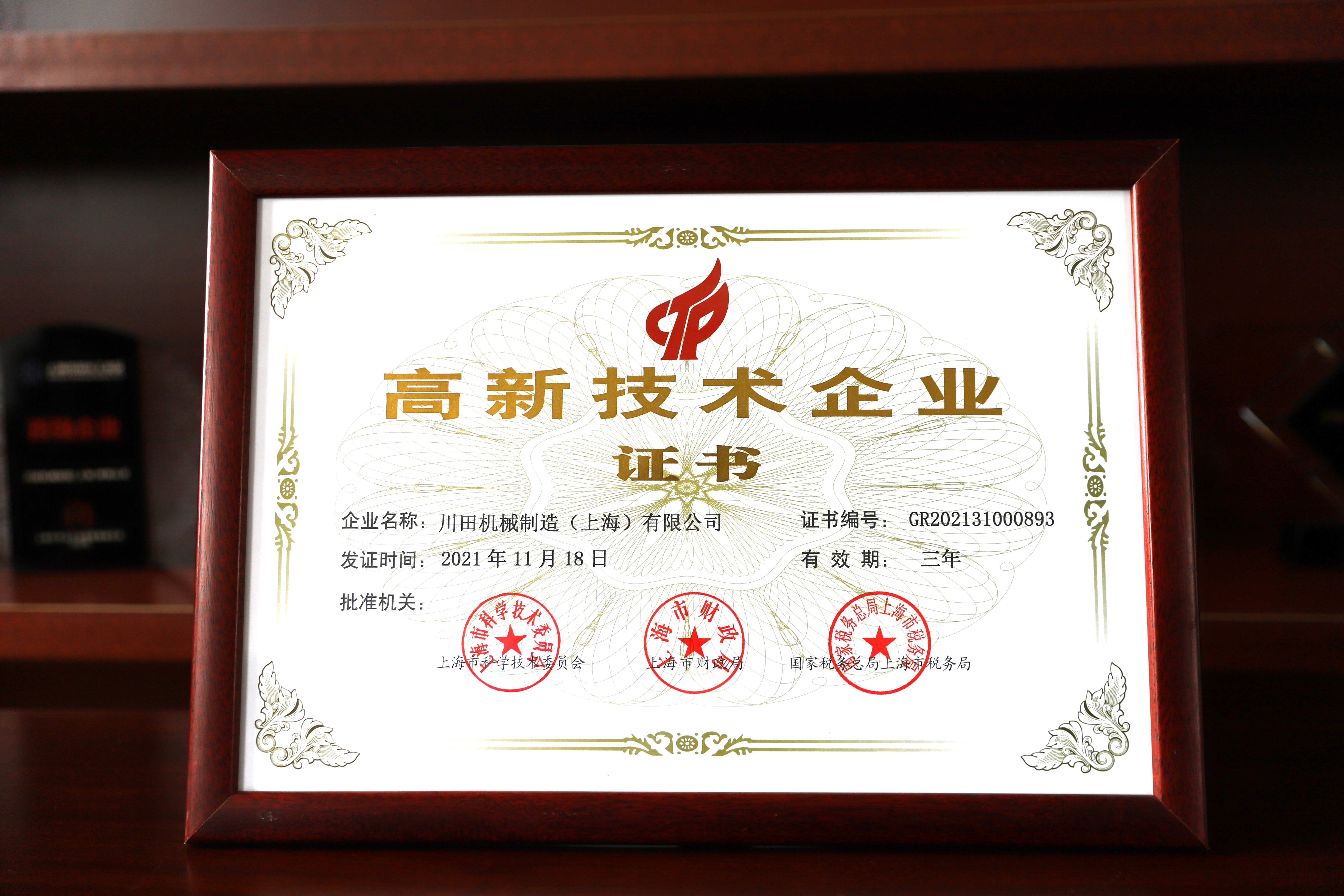 2021年度莘莊工業(yè)區(qū)優(yōu)秀企業(yè)証書